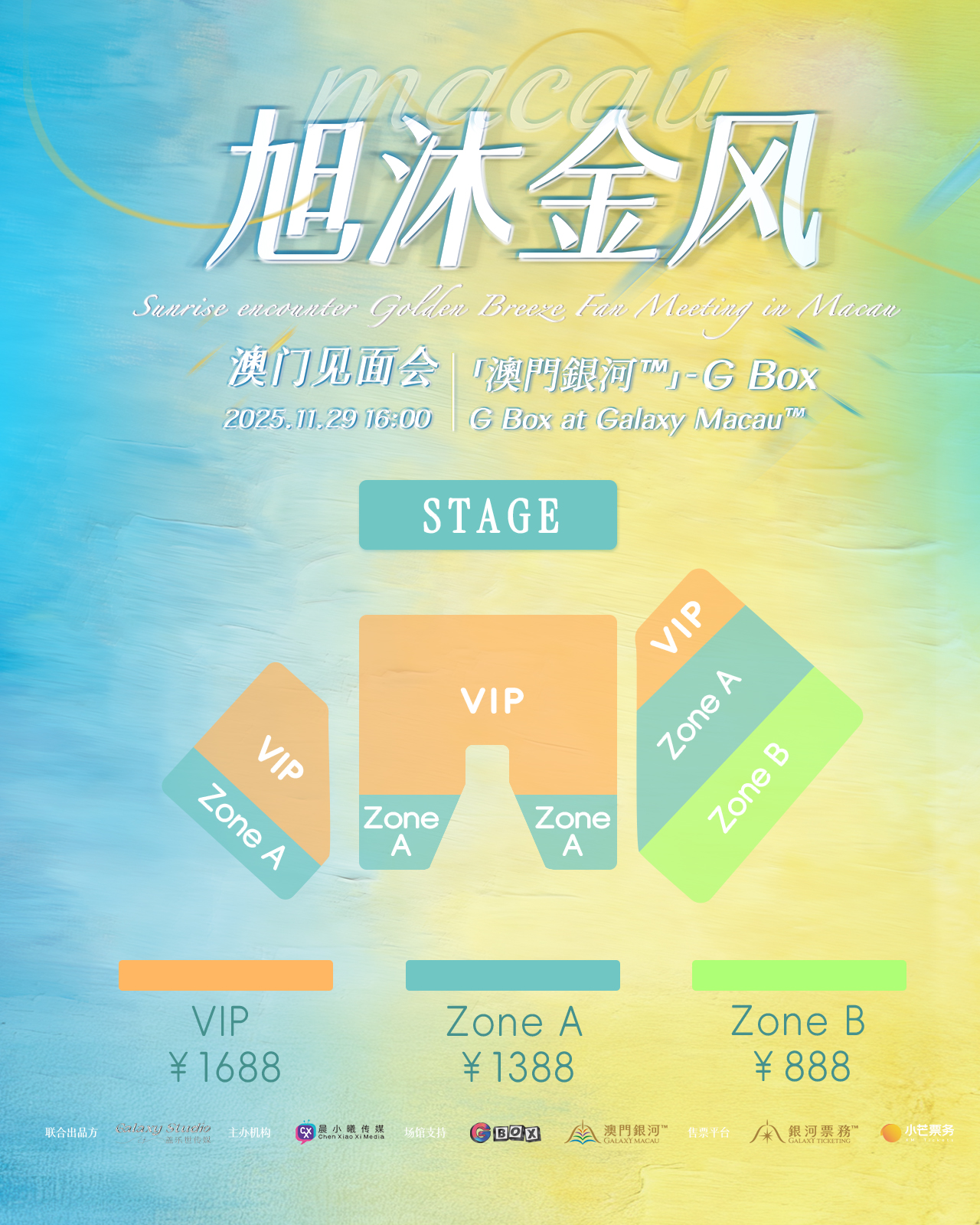 | Ticket Price: | MOP/ HKD $1,885 (VIP) / $1,585(A) / $985(B) CNY ¥1688(VIP), ¥1388(A), ¥888(B) |