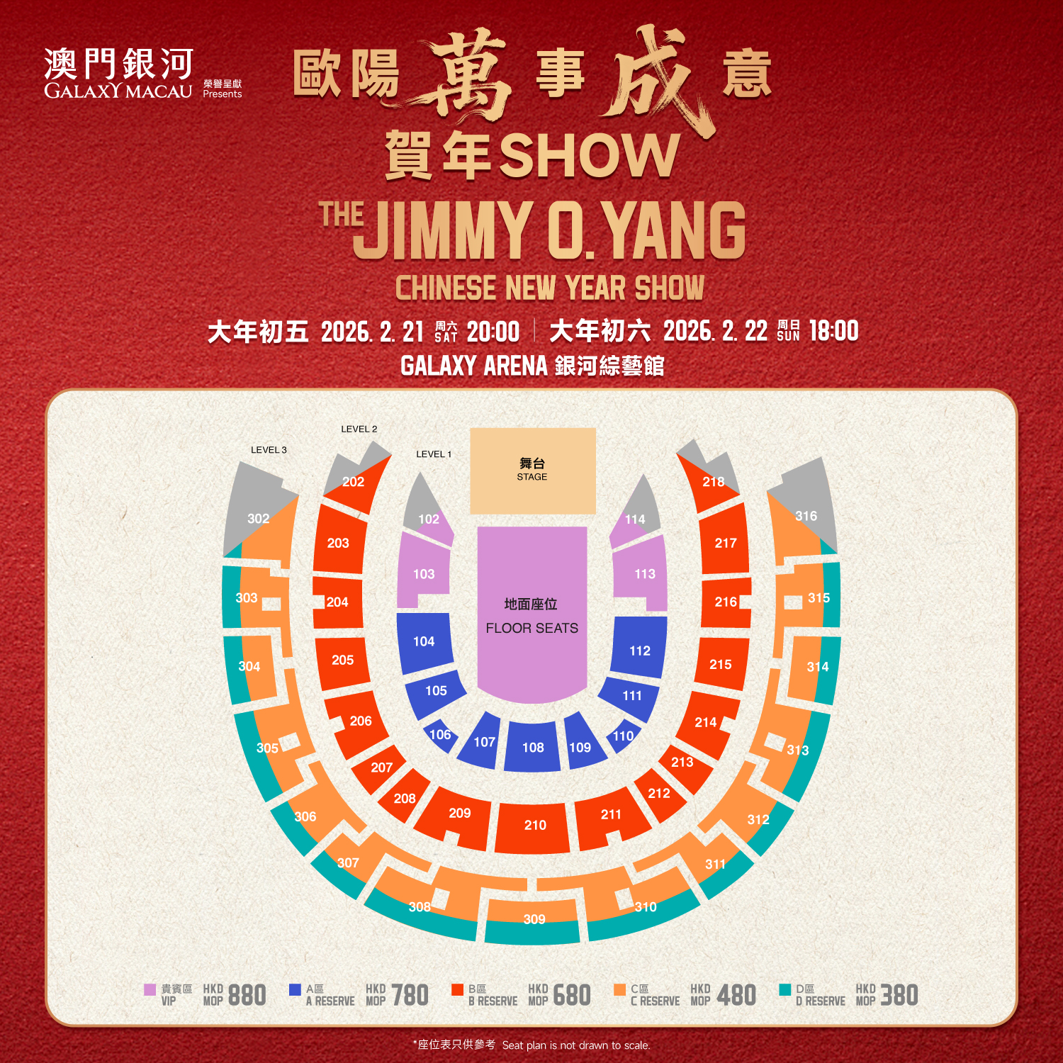 荷里活影星、棟篤笑演員歐陽萬成Jimmy O. Yang強勢回歸「澳門銀河」綜合度假城,並將於2026年2月21日及22日(農曆年初五及初六)首度登上澳門最大室內場館──銀河綜藝館,為觀眾帶來「澳門銀河」榮譽呈獻:歐陽「萬」事「成」意賀年Show,以全新節目編排呈獻多元化演出,除了個人棟篤笑,更有一眾重量級嘉賓到場助興,載歌載舞共慶新歲。