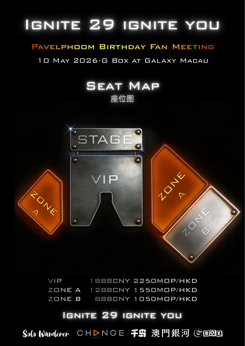 Pavelphoom 於2026年5月10日在「澳門銀河」 - G BOX舉辦生日粉絲見面會。活動內容包括:藝人演唱多首歌曲、與粉絲互動遊戲、舞蹈挑戰環節、粉絲應援視頻展示以及生日慶祝環節。活動旨在為粉絲提供近距離交流與娛樂體驗。