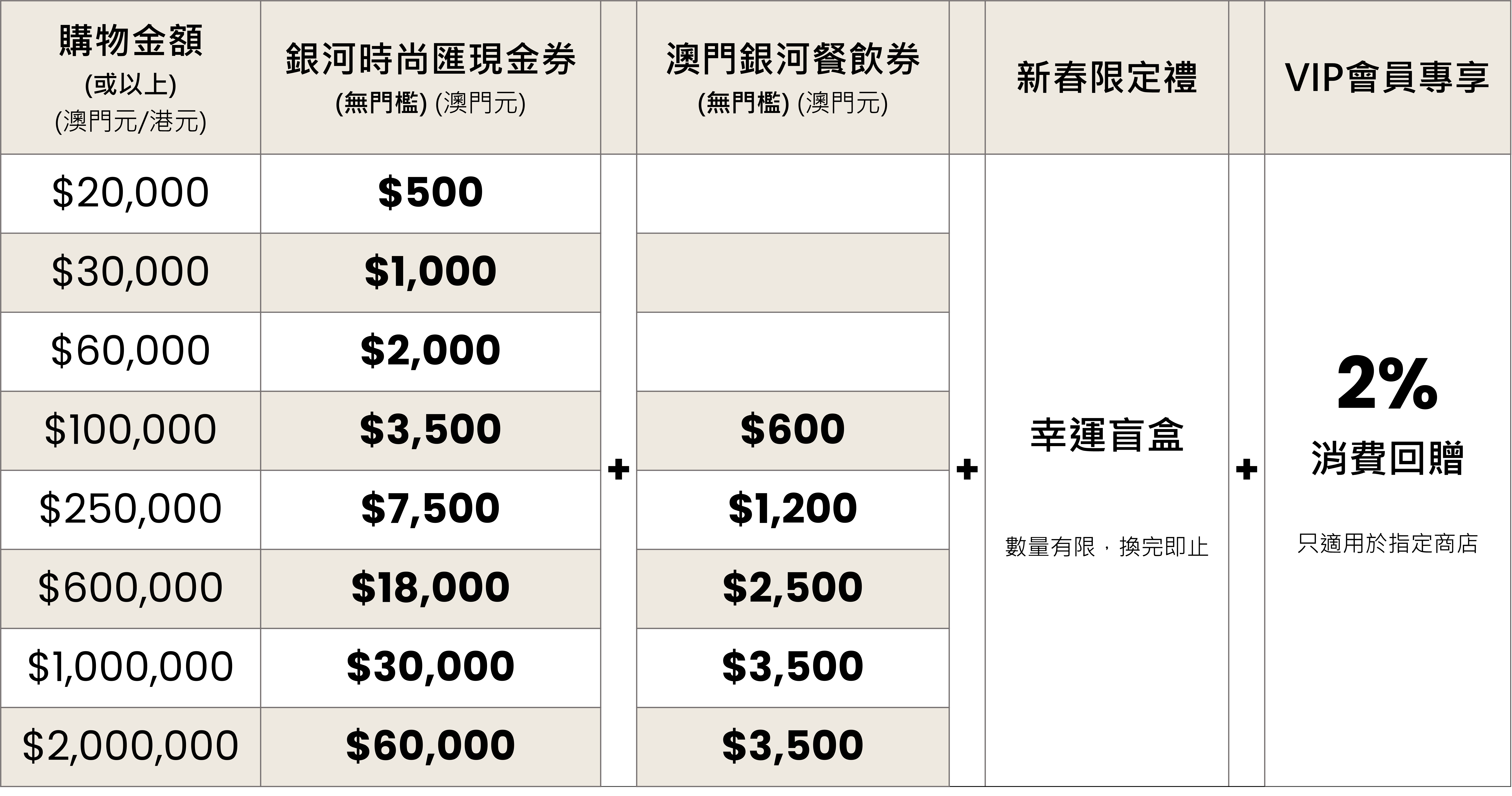 新春佳節,盡享奢華品牌新品及專屬購物禮遇!2026年2月13至23日,於銀河時尚匯購物滿$20,000享高達6%購物及餐飲返現+即抽即獎幸運盲盒— 為新一年揭開好運序幕!