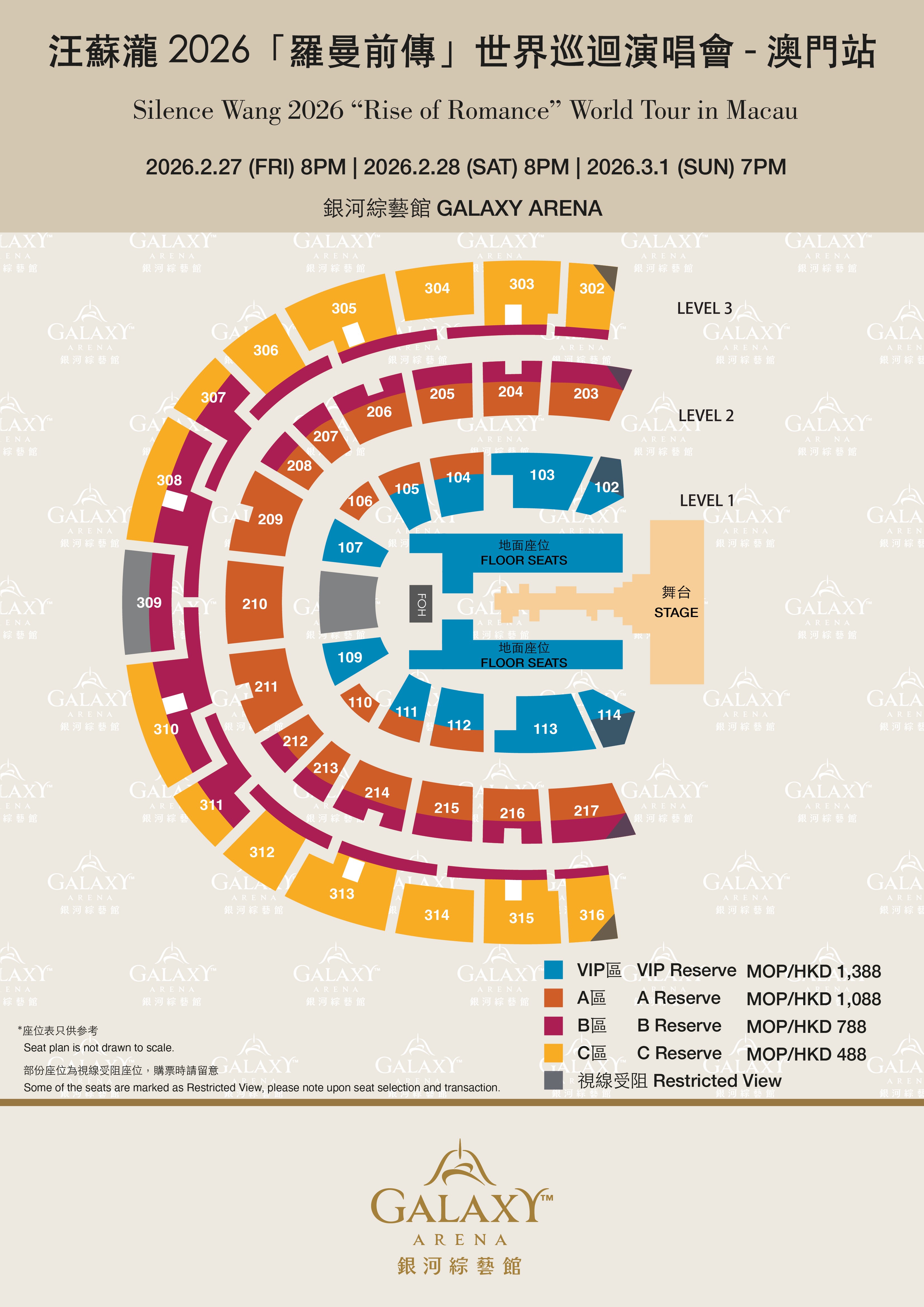 汪蘇瀧2026「羅曼前傳」世界巡演首站即將來到澳門銀河!2026年2月27-28日及3月1日,連續三晚,銀河綜藝館開唱!全新主題及舞美、煥新歌曲編排,一起近距離感受這場專屬於羅曼宇宙的巔峰巨制!